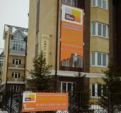 Для компании "Best homes" мы изготовили баннер 12х3 м. на металлокаркасе. Баннер закреплен на металлической раме при помощи шнуровки через люверсыТак же вы можете посмотреть наши работы по изготовлению панель-кронштейнов.