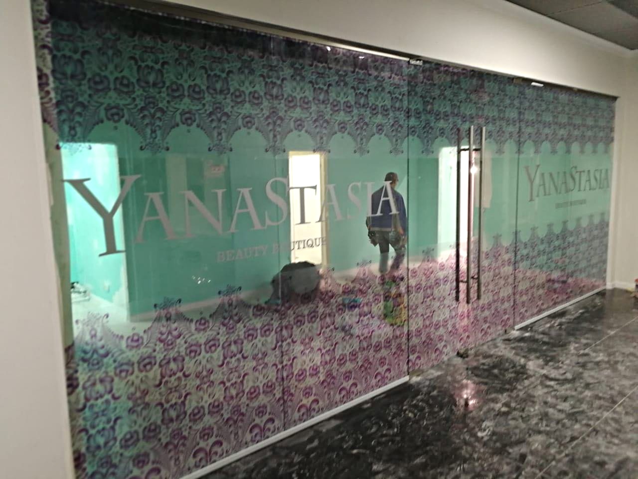 Оклейка витрин; Печать на прозрачной плёнке; Плоттерная резка серебристой плёнки 090М